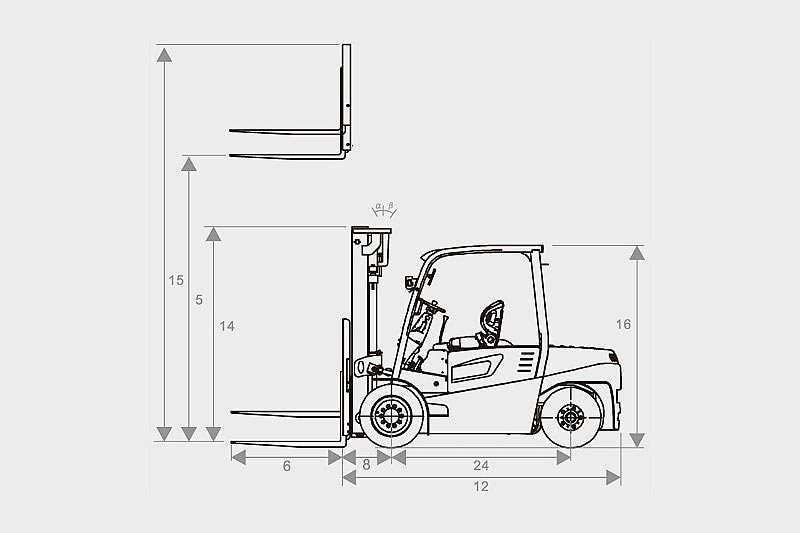 Gabelzinkenlänge 1370-2570 mm für 5-7 t optional (Aufpreis)