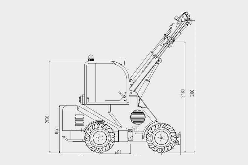 max. Hubhöhe (Ausleger eingefahren) 2480 mm